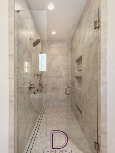 Layered lighting sets the mood, with recessed lights providing general illumination, sconces flanking the mirrors for a touch of vanity lighting, and a stunning chandelier over the tub, adding a touch of glamour. And let's not forget the towel warmer - a detail that transforms a simple act into a daily indulgence. Warm towels and a gentle, radiant heat create a spa-like experience every time you step out of the shower.