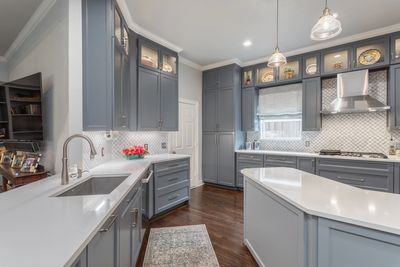 - Tranquil Transformation: Gloomy colors were replaced with a calming color palette throughout the kitchen, butler's pantry, and laundry room, creating a cohesive and serene environment.